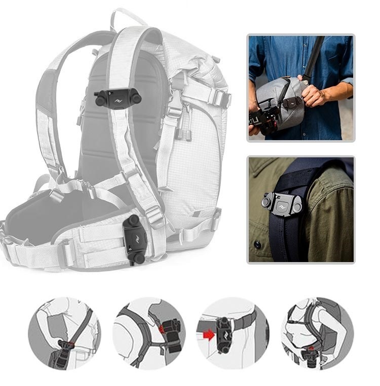 Carry binoculars, lenses, and GoPro cameras with additional plates/kits (sold separately)